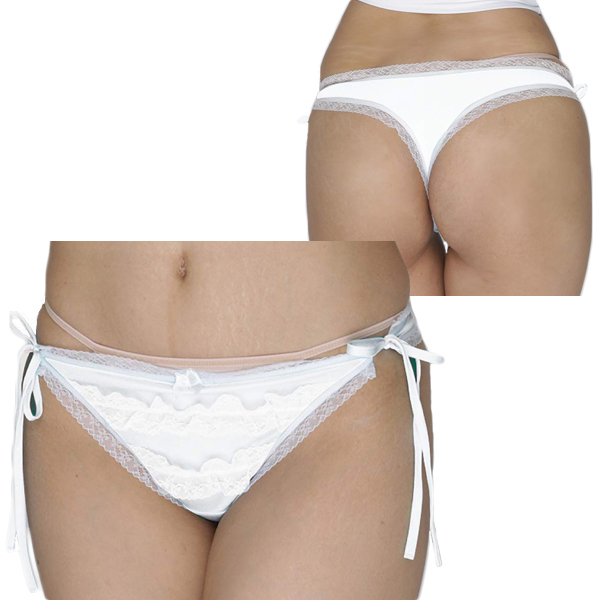 > 2段のフリルレースが可愛い光沢Tバック ホワイト