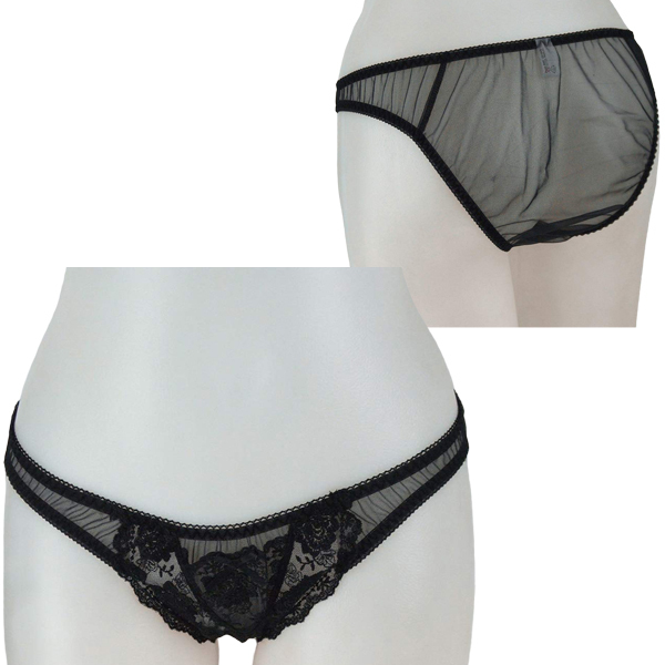 > 2Lサイズ レース&シースルー極薄フルバック ブラック