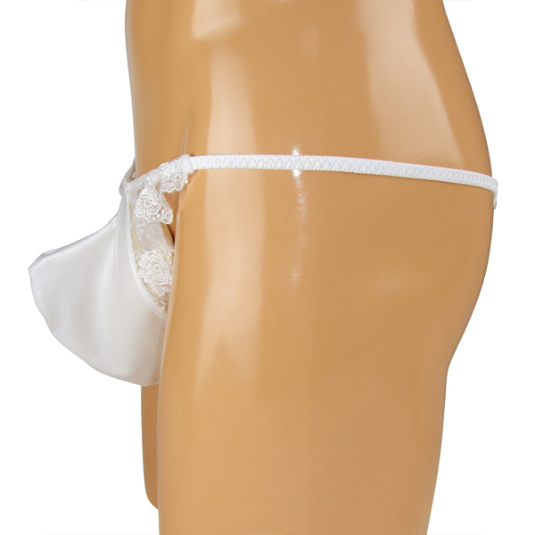 女装男子さん必見!花柄の刺繍レースで可愛く仕上げたメンズ用Tバック(白)。