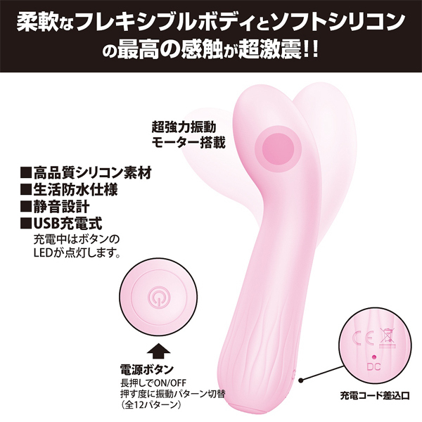 自由自在に曲がる柔軟ボディと、肌に優しい滑らか質感が最高の感触を生み出すUSB充電式のスティックバイブ。