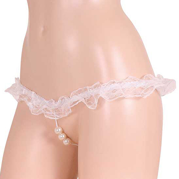 エロさ急上昇の大粒3連パールひもパン ホワイト