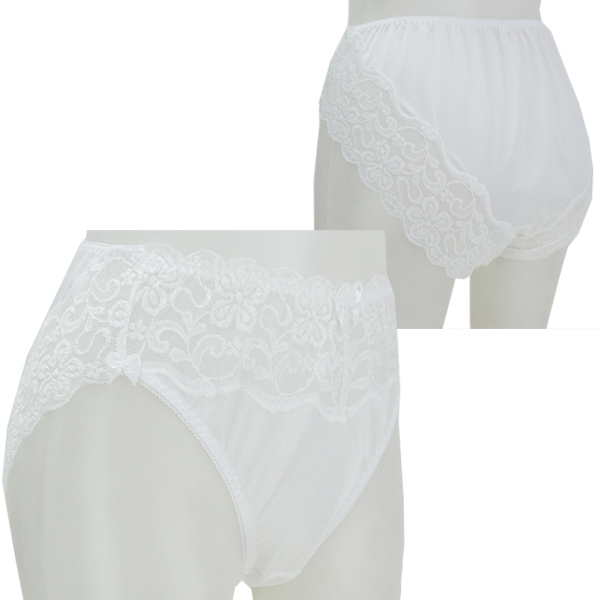 > 光沢柔らかレース付きフルバック ホワイト LL