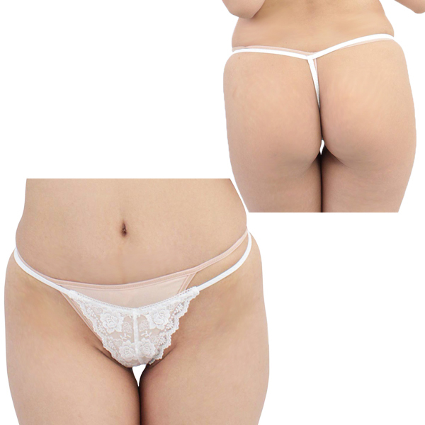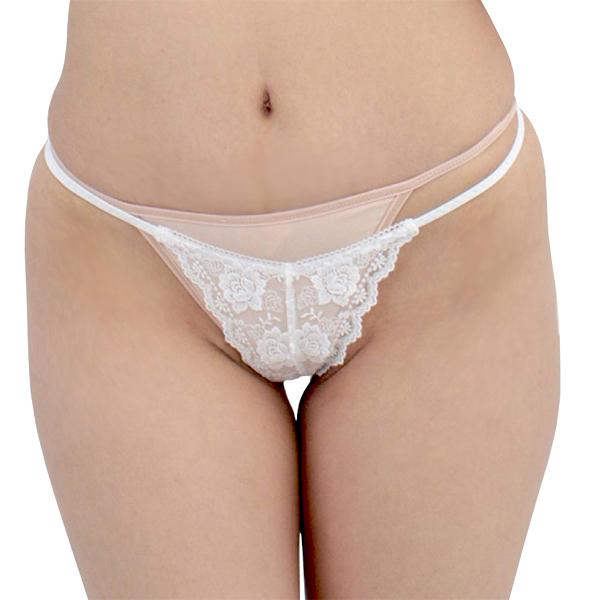 艶やかな光沢感と可憐な花柄総レースでセクシーな女性を演出するGストリング(白)。
