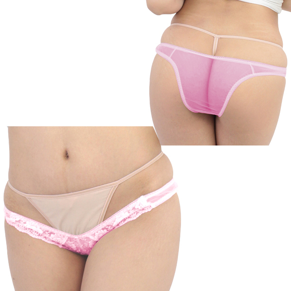 > 極薄レース刺繍ローライズ極小ハーフバック (ピンク)