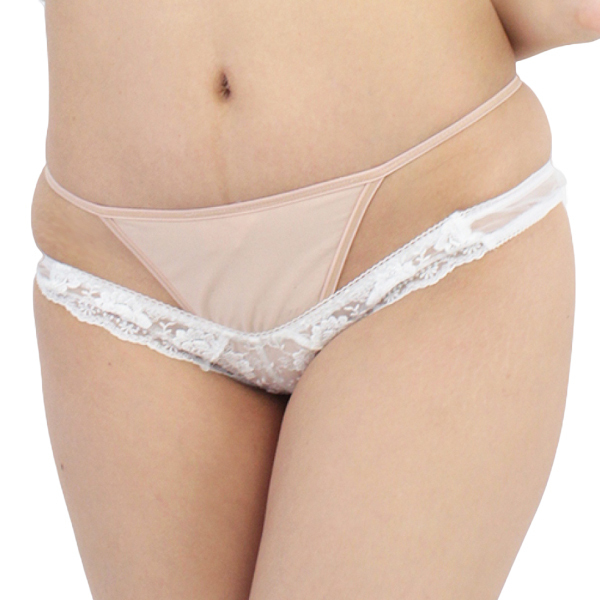 > 極薄レース刺繍ローライズ極小ハーフバック (ホワイト)