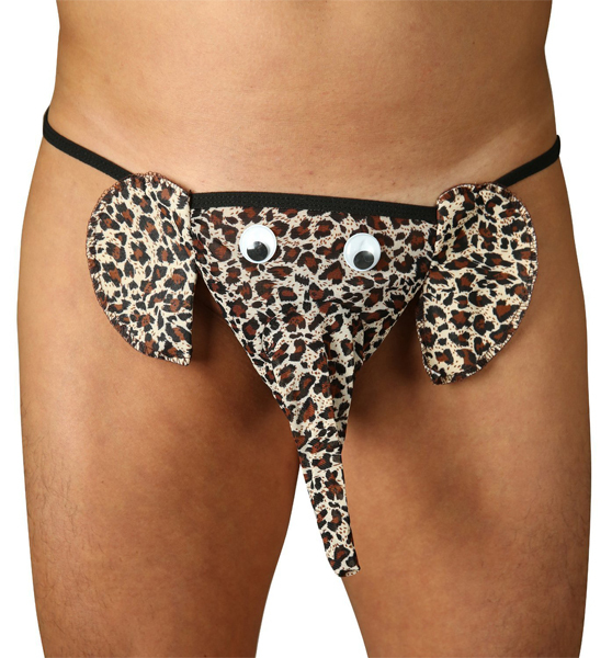 ハロウィンにも最適!豹柄のゾウが逞しさを強調するおもしろ系メンズ用Tバック。