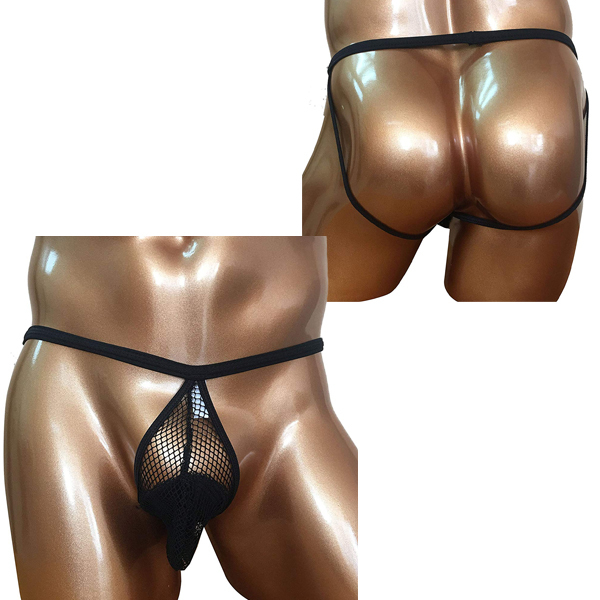 黒のメッシュ素材で男の象徴をワイルドかつセクシーに演出するメンズ用Oバック(黒)。