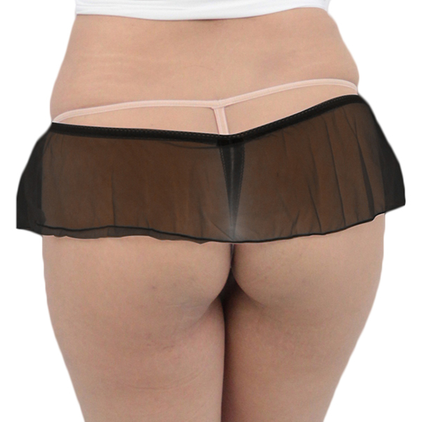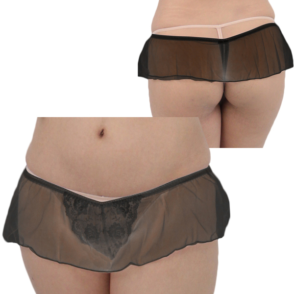 動くたびにヒラリと揺れる♪透け感のある極薄スカートと、レース刺繍が施されたショーツが一体型になった日本製セクシーTバック(黒)。