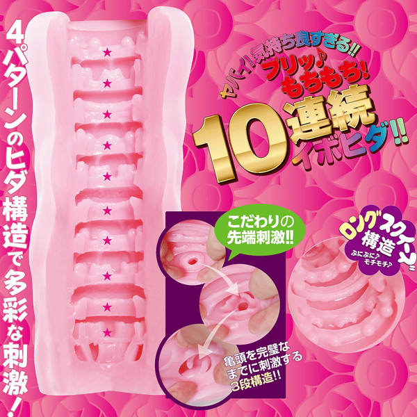 プリもち質感のイボヒダ10連続!4種類のヒダ構造で多彩な刺激を堪能できる非貫通型
