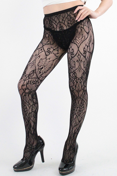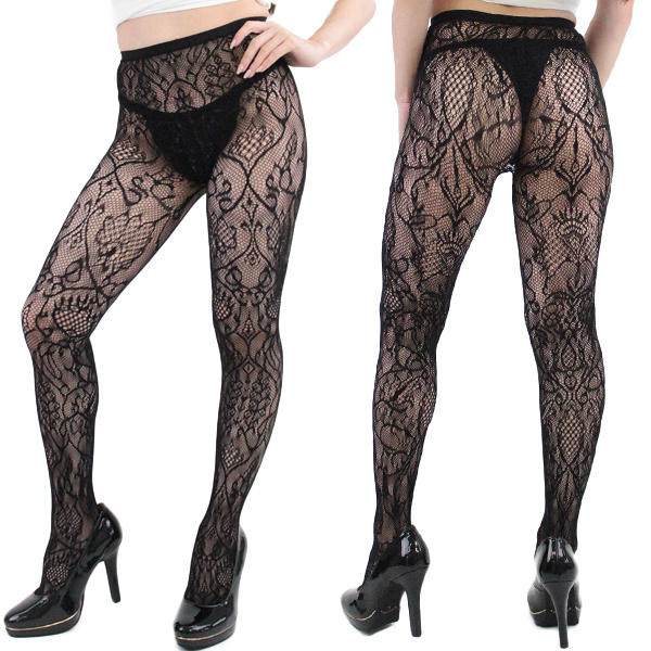 上品でクラシカルな雰囲気を生み出すアラベスク柄の網ストッキング(黒)。