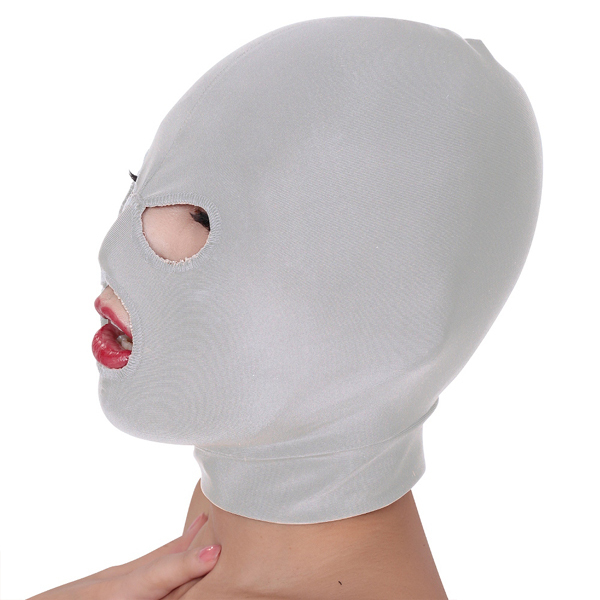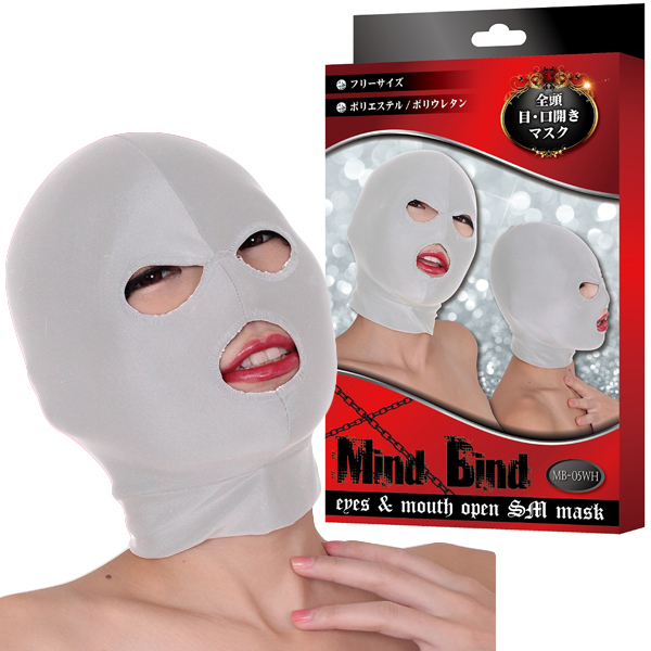 絶妙なフィット感で頭部を覆う目&口オープン仕様のホワイト全頭マスク。