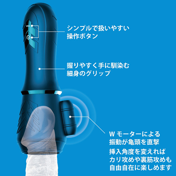 亀頭を鍛えて早イキ防止!Wモーターの強力振動が先端を激しく襲う電動オナホ。