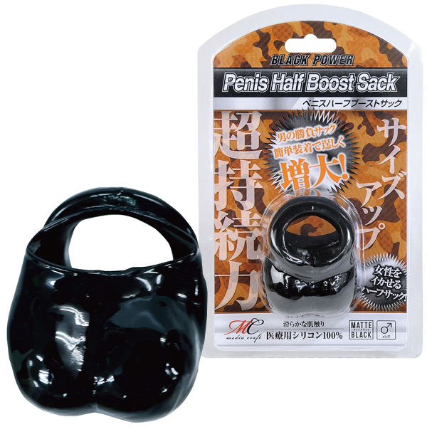 ペニスの根本と玉袋をガッチリとホールドし、ペニスを締め上げることで持続力&サイズアップ効果が期待できる「ペニスハーフブーストサック」です♪伸びる素材だから簡単に装着でき、袋全体を締め上げることで射精感と快感もアップ!女性をイカせるハーフサックといえば、これをおいて他にはないでしょう。