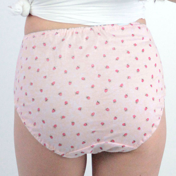 肌なじみの良いイチゴ柄コットン深履きショーツ ピンク