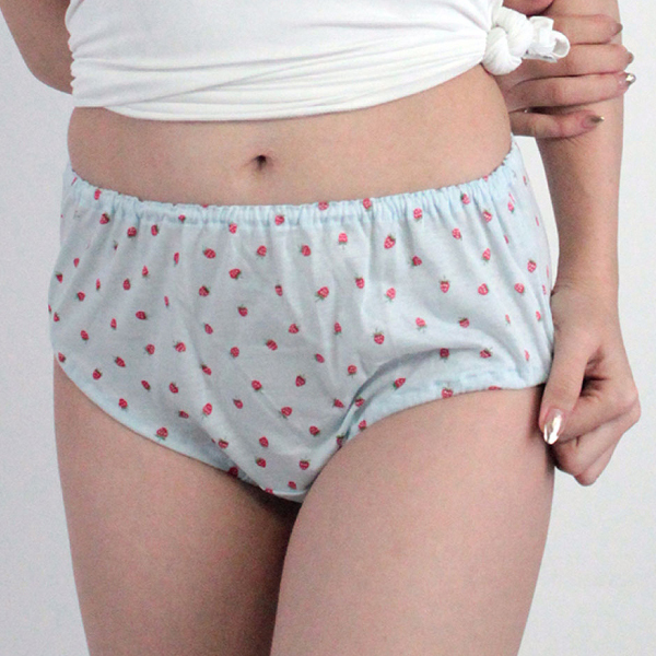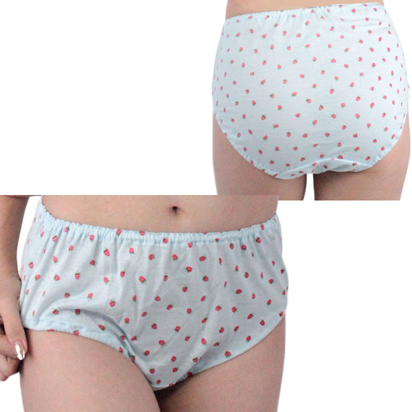 肌なじみの良いイチゴ柄コットン深履きショーツ サックス