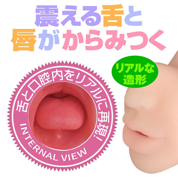 見た目から内部までリアルに再現!震える舌と唇が絡みつく強力振動ローター付の非貫通電動オナホ。