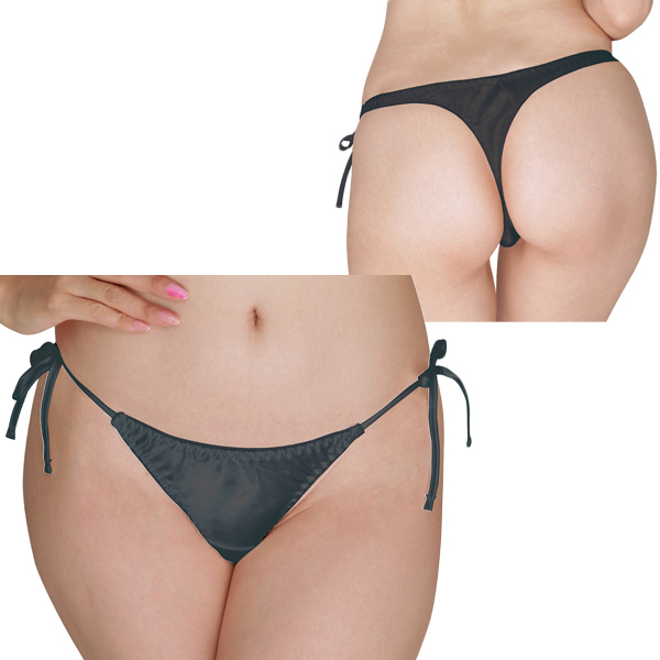 光沢サテン脇紐Tバック Lサイズ ブラック