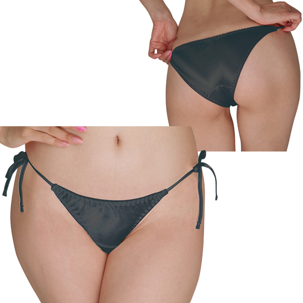 > 光沢サテン脇紐フルバック Lサイズ ブラック