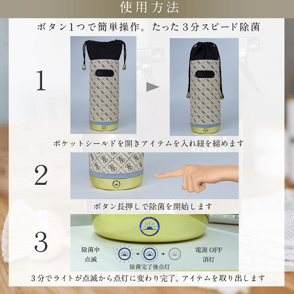 洗いにくいマスクやグッズのウイルス対策に!ボタンをワンプッシュして3分待つだけ、手軽に簡単スグ除菌♪UVC LEDを使ったUSB充電式の持ち運べるUVクリーナー。