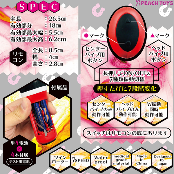 仕様:パッケージ:35.0×7.5×8.2cm 本体:全長26.5cm・挿入部18.0×5.5cm 電池:単四電池×4本使用