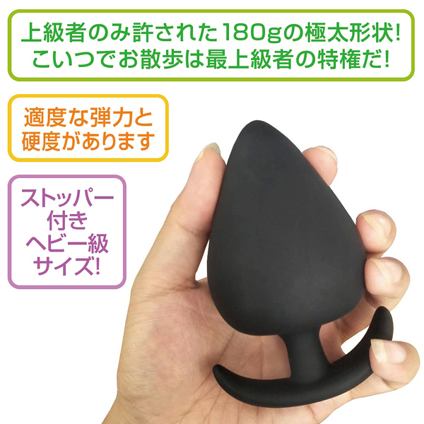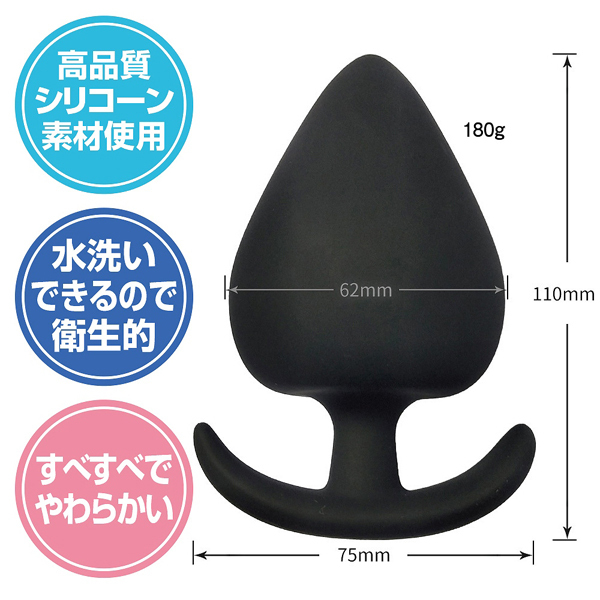 全長11cm、最大幅6.2cm!お尻の中を圧迫刺激する超特大180g仕様のストッパー付きプラグ。