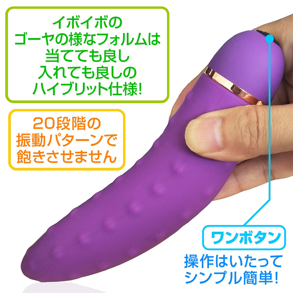 20種類の豊富なアクションを搭載!粒々突起を無数に配置したゴーヤ形状の電池式バイブ。