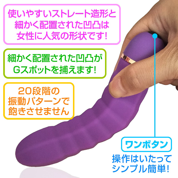 段々と配置された凹凸がGスポを捉えて振動刺激!素材は肌に優しく柔かい高品質シリコン製。