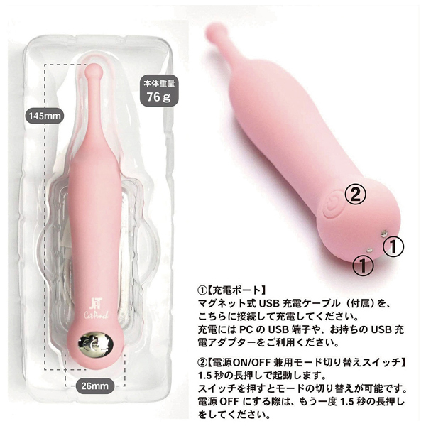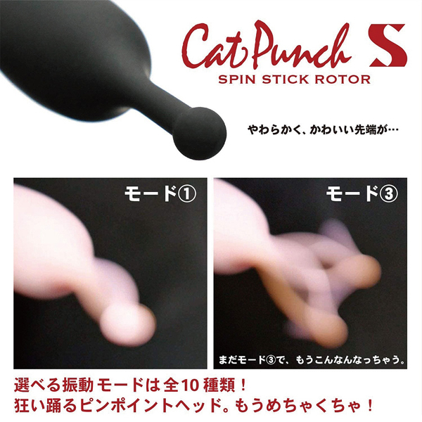 触覚が高速で狂い踊る!高周波&高速旋回でスピン振動するUSB充電式スティックローター「キャットパンチ」。