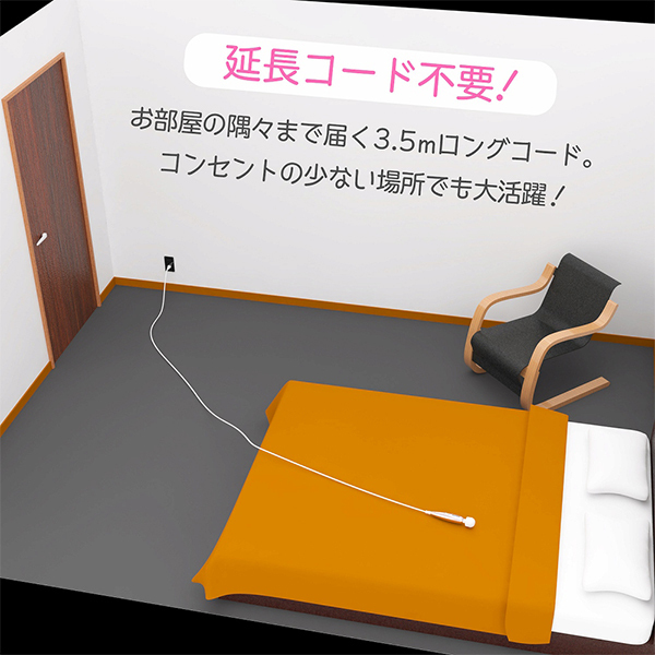 ほぼ延長コード無しで楽しめる設計でコード付け根の断線の不安もエラストマー素材によりしっかりカバー♪パートナーと使っているときにコードがピーンと張ることもないでの大変便利です。