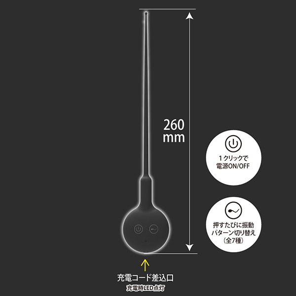 仕様:パッケージ:28.5×7.2×3.0cm 本体:全長26.0cm・挿入部径:0.2×0.5cm USB充電式