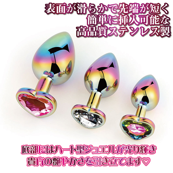 高品質なステンレス製の素材を使用!冷やしたり温めたりといった温感変化も楽しめるマルチカラーハートプラグハート形のアナルプラグです。