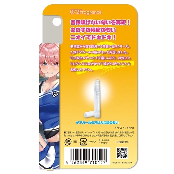 」がするエッチなニオイのフレグランスが登場しました♪人気チアガールのワキの匂いを再現!布に吹きかけて脇の匂いを楽しんだり、お気に入りのグッズに吹きかけて嗅ぎながらシコシコお楽しみ下さい。