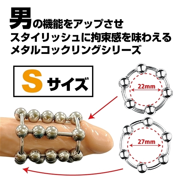 男の機能をアップさせスタイリッシュに拘束感を味わえるメタルコックリングシリーズ!中間に配置された2個と3個のメタルボールが、動く度に、上下へスライド。