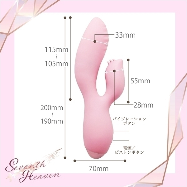 女性に寄り添う愛情バイブ「セブンスヘブン」繊細なウエーブを施したヘッドが、Gスポットをキャッチし7パターンの多彩なピストンで奥を丁寧に撫で上げます。