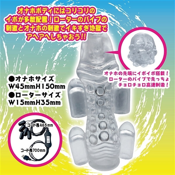 20段階の振動切り替えの強烈なローターが、ズンズン振動し君を絶頂へと導く!透明のサックに装着されたローターからの強烈な攻撃ば透明だから見える硬直し赤く変化する自分自身。