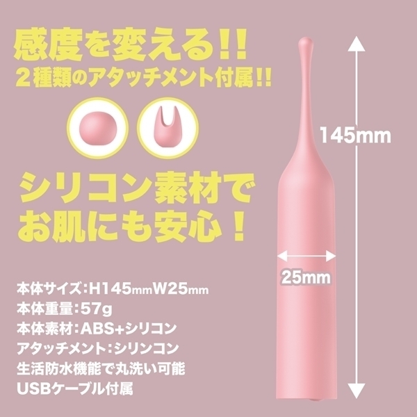小さなヘッドだから集中した毎分12000回転の強振動を2種のシリコンヘッドを使い分けてお好みの場所で楽しんでください。
