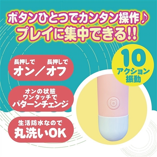 超軽量シリコンローターのマッシュは、かわいい形だけでなく10モードのアクション振動とヘッド部を押しつけても痛くないシリコン素材を採用している柔らかローターです。