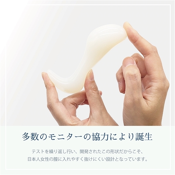 多数のモニターの協力を得て、テストを繰り返し誕生したこの形状だからこそ、日本人女性の膣に入れやすく抜けにくい設計です。