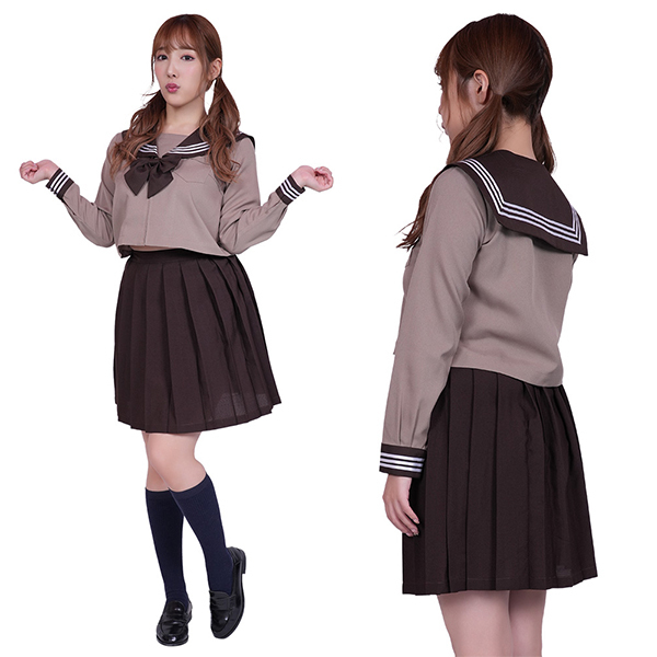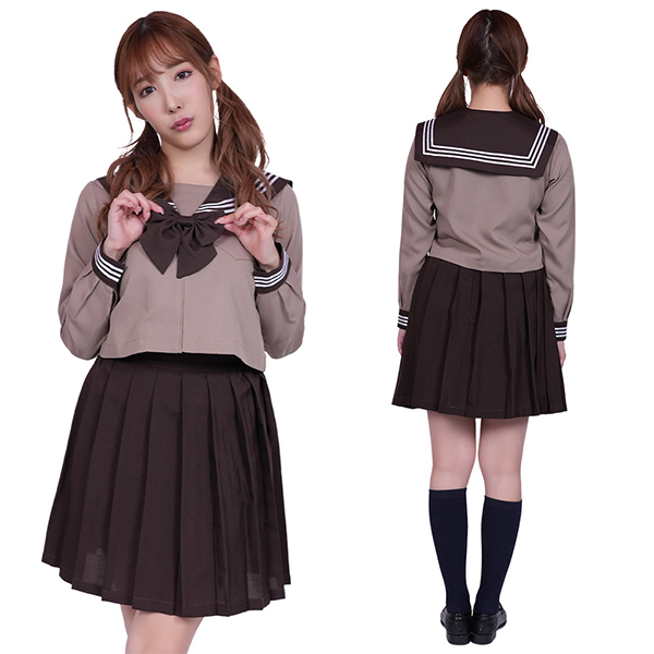 仕様:着丈43cm・肩幅37cm・袖丈54cm・B94cm〜98cm・スカート総丈47cm・W66cm〜70cm セット内容:長袖セーラー服、スカート、リボンタイ