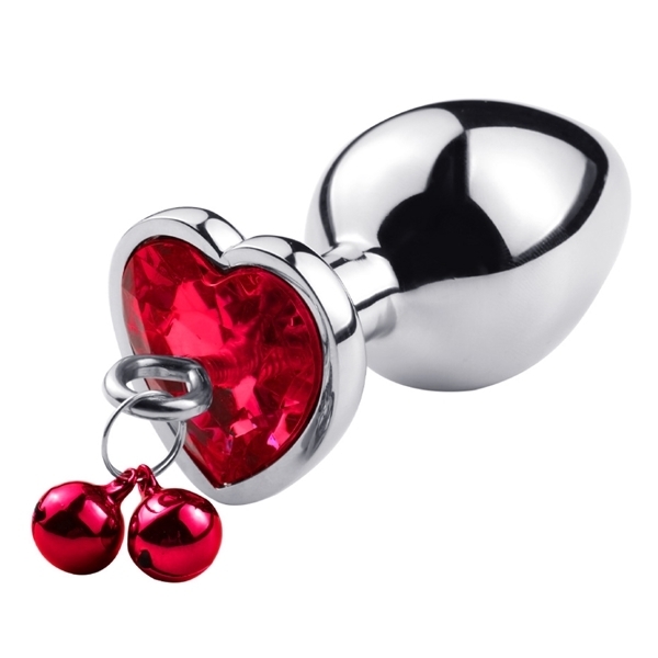 鈴の付いたハート形のア○ルプラグ 鈴の音でお出迎えなんてかわいいですよね!チェーンリードを付けてお散歩するのはいかがですか?プラグとリードで使い方はいろいろです。
