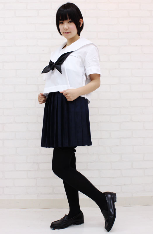 白いセーラー服に黒スカーフがマッチ!清楚で爽やかな制服コスチューム。