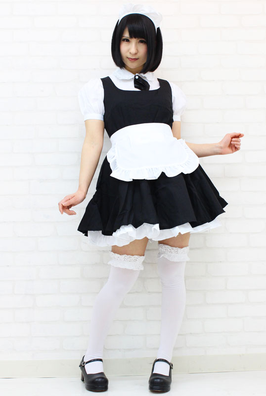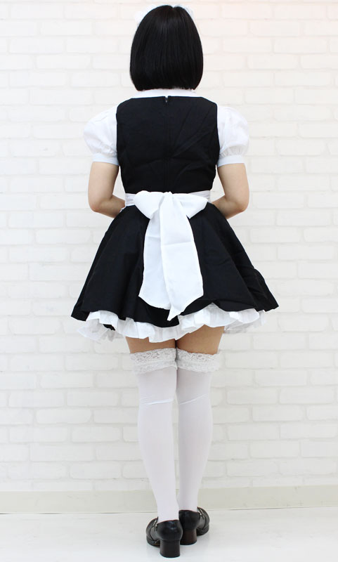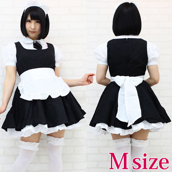 仕様:Mサイズ:B〜90cmcm・W〜72cm 丈:ワンピース78cm(裾フリル含む)・ブラウス54cm(袖丈21cm、袖幅30cm、肩幅39cm、首周り38cm) セット内容:ブラウス、タイ(ナップボタンにて取り外し可能)、ワンピース(背中ファスナー)、エプロン、カチューシャ