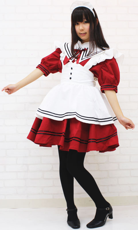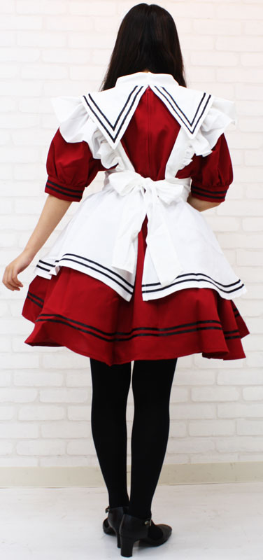セーラー服を彷彿とさせるエリ付きのメイドコスチューム(エンジ)。