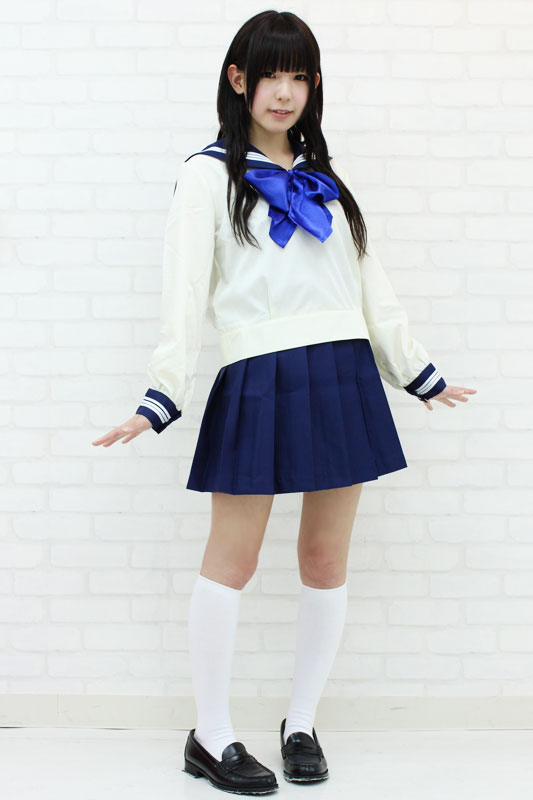 青いリボンが爽やか!キュートな長袖セーラー服コスプレ。