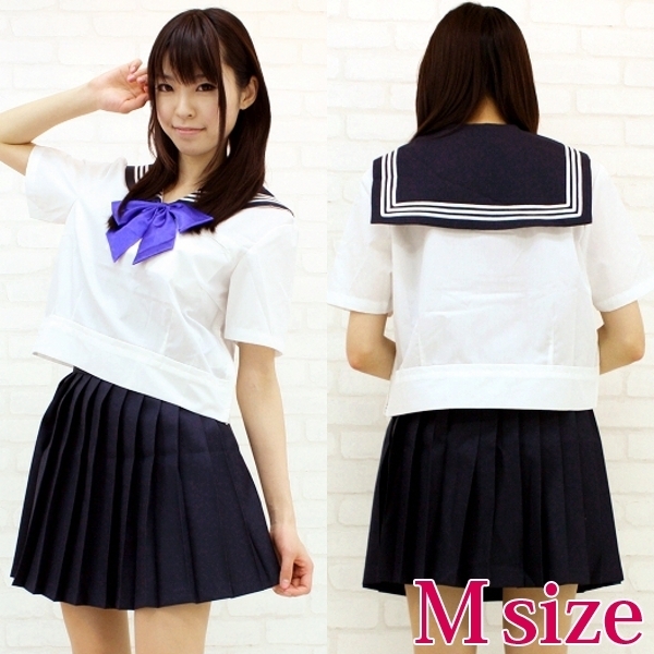 青いリボンが爽やか!キュートな半袖セーラー服コスプレ。