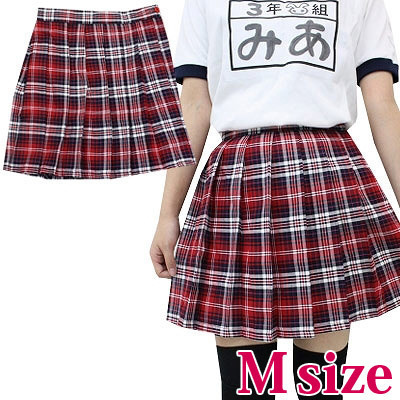 制服コスプレの定番アイテム!レッド×ホワイトのチェック柄プリーツスカート。