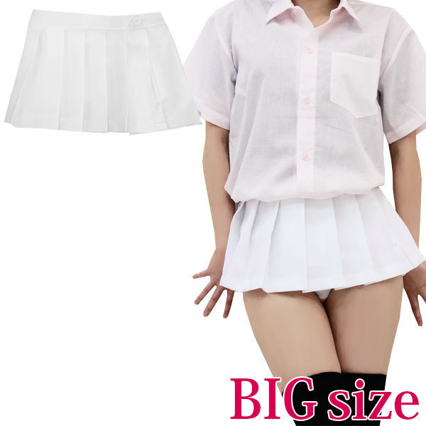 本格的な女子高生コスプレ!超ミニ丈の無地プリーツスカート(白)。