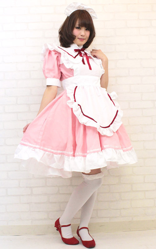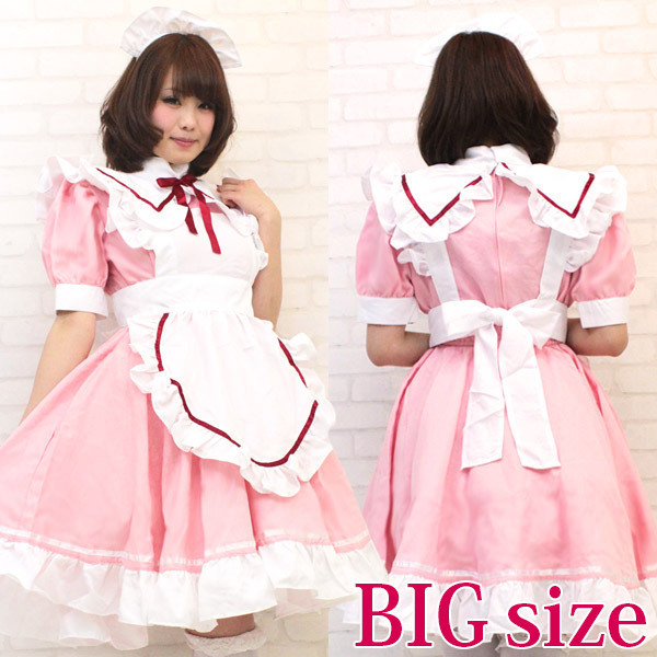 ピンクに馴染む白が乙女チックなワンピースのメイドさん衣装(BIG)。