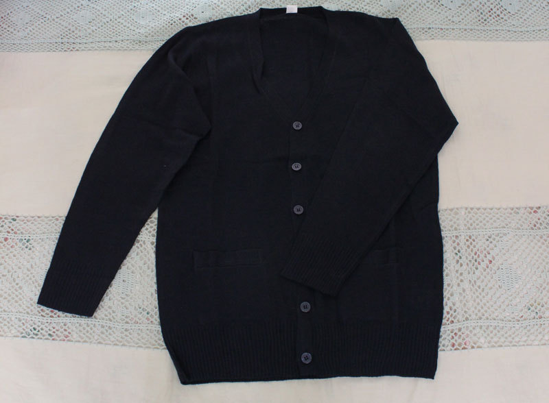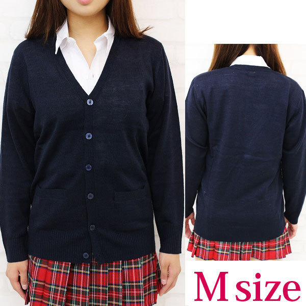 学生服コスプレにピッタリなネイビーカラーの「ニットカーディガン」。