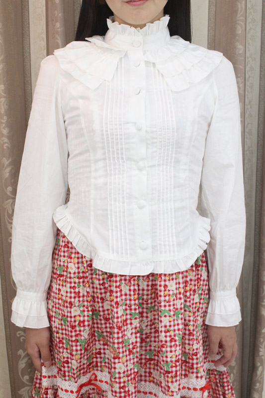 プリンセス気分が盛り上がるたっぷりフリル!クラシカルな世界観を楽しめる純白のブラウス単品(M)。